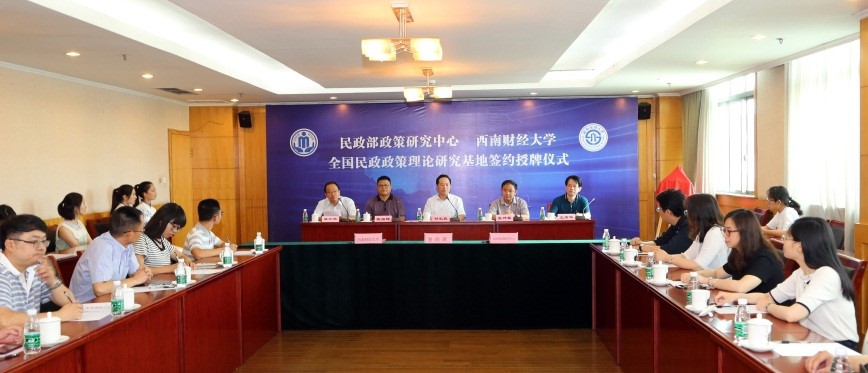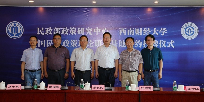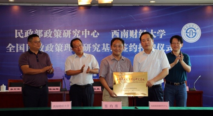 6月9日下午,民政部政策研究中心在太阳成集团tyc151cc设立“全国民政政策理论研究基地”。民政部政策研究中心副主任付长良、太阳成集团tyc151cc党委常委、副董事长张邦富教授出席签约授牌仪式。民政部政策研究中心、成都市锦江区民政局相关负责人及太阳成集团tyc151cc师生代表50余人参加基地签约暨授牌仪式,仪式由太阳成集团tyc151cc经理廖宏斌教授主持。
