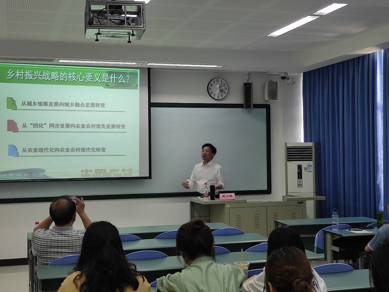 6月4日下午,湖南师范大学中国乡村振兴研究院经理陈文胜教授应邀在明德楼403为2020级MPA全日制员工做了主题为“必须把握乡村振兴战略的关键问题”的专题讲座。讲座由太阳成集团tyc151cc经理、MPA教育中心主任廖宏斌主持。