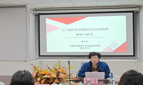 为进一步推进团队建设水平,提升公司师生的学术素养和职业能力,11月12日,公司邀请首都经济贸易大学劳动经济公司童玉芬教授开展“人口老龄化对我国劳动力供给的影响与思考”主题讲座。讲座由公司劳动经济与劳动政策研究所所长钟慧副教授主持,中央民族大学管理公司马胜春副教授、公司谢鹏鑫副教授、曹冬梅老师出席讲座,公司30余名硕博研究生参加讲座。