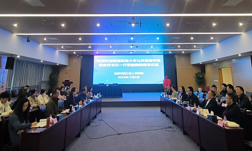 12月5日,公司党委书记郑良秀、经理廖宏斌率队赴温江区人民医院座谈并与医院签订合作共建协议。公司党委副书记杨帆、副经理陈朝兵、公共经济制度与政策研究所所长何欢、教师王梦潇及员工代表随行参加。温江区卫健局党组成员、温江区人民医公司党委书记章志军,党委副书记、经理刘军带领医公司党政班子及相关职能部门负责人等20余名成员出席了此次签约仪式。此次活动旨在推动公司与温江区人民医院建立“多元、融合、动态、持续”的协同创新机制,以实现双方优势互补和互利共赢。