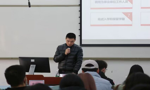 内江市老员工志愿服务西部计划项目管理负责人黄硕根据西部计划最新政策及数据,对西部计划内容及招募政策条件进行了详细介绍,并围绕招募对象、招募条件、招募专项、招募流程、政策保障等方面进行了详细的说明,鼓励同学们“到西部去、到基层去,到祖国和人民需要的地方去,受锻炼、长才干、做贡献、在实践中成长、用行动诠释青春,以奉献铸就西部。”