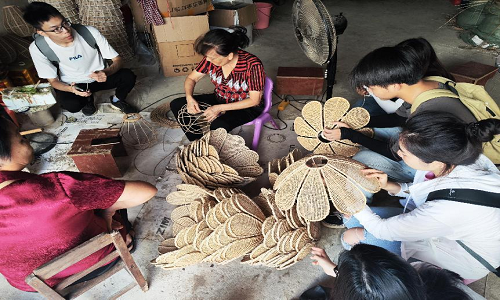 微光向桂实践队参与非遗芒竹编制作