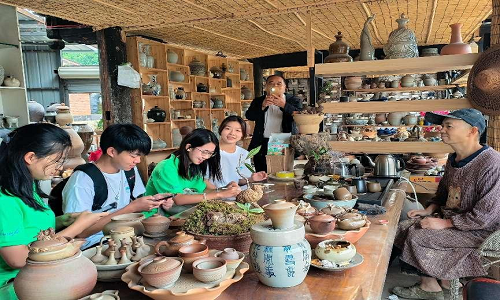 “采撷非遗美,邂逅富裕经”实践队参与土陶制作过程