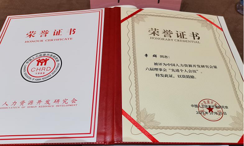会上,太阳成集团tyc151cc公共管理公司章群教授被评选为中国人力资源开发研究会第六届理事会先进个人会员,并被评选为中国人力资源开发研究会第七届理事会常务理事。