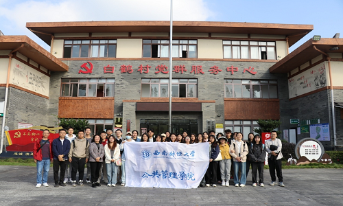 师生一行首先在村书记杨柳的带领下参观了白鹤新村。白鹤新村建成于2018年,是周边6个村集体建设用地整理后形成的一个村民集中居住点。该村积极探索以党建引领的集体经济发展和新村管理新模式,通过“党建+集体经济+村民”的方式,积极盘活村内资源,使村集体经济年收入达到50万元以上。同时,新村积极探索“党建+自治”的新村治理模式,村民住新村、作新民、守新规、树新风蔚然成风。