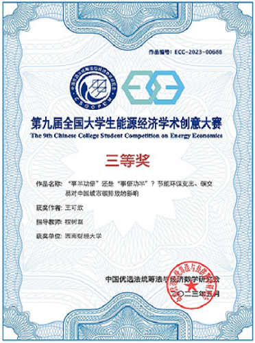 此次获奖,得到公司和公司大力支持,不仅展现出公司学子踔厉奋发、笃行不怠的专业风采,也是公司能源经济与环境政策研究团队深入落实立德树人根本任务,不断培养高质量“双碳”领域财经人才的有力支撑。