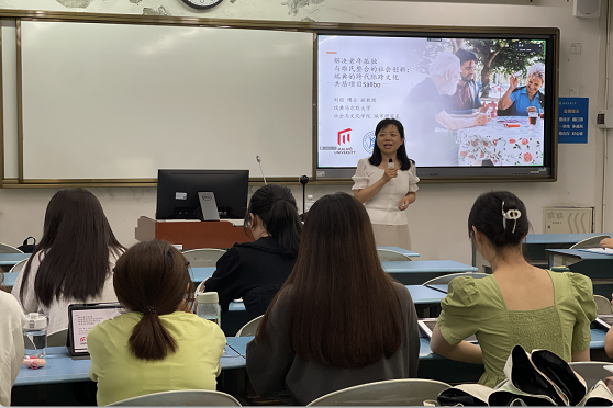 陈泽媛老师首先向全体师生简要介绍了刘炬老师,并对刘老师的到来表示热烈欢迎。随后刘炬老师介绍了自己在国内外丰富的创新研究经验,从研究背景、组织过程、项目的影响和启示等三个方面展开了Sällbo跨代际跨文化公营住宅共居项目社会创新案例分析。