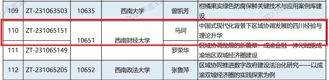 近日,教育部学位与研究生教育发展中心公布了2023年度主题案例立项结果。由公司马珂副教授担任首席专家,廖宏斌教授、谢小芹教授、陈朝兵副教授、高明讲师以及社会发展公司谭远发教授作为团队成员申报的《中国式现代化背景下区域协调发展的四川经验与理论升华》成功立项。公司已连续三年获批教育部主题案例项目。