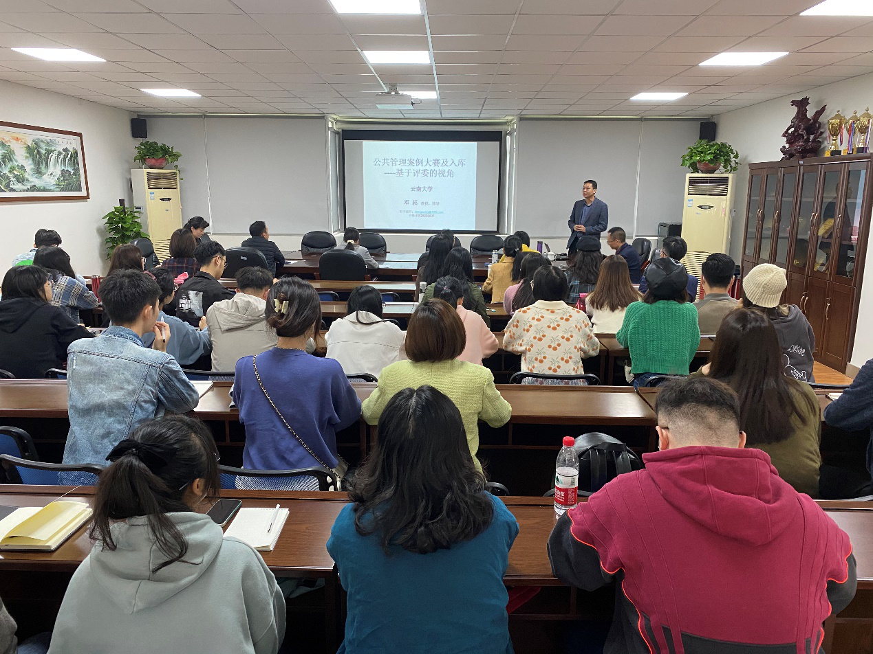 10月18日上午9点,太阳成集团tyc151cc太阳成集团tyc151cc在通博楼A320会议室开展了题为“公共管理案例大赛及入库---基于评委的视角”和“MPA案例研发讲座之选题与分析框架”的两场讲座。讲座特邀云南大学政府管理公司邓崧教授、马桑教授进行主讲,太阳成集团tyc151cc各年级专业硕士、学术硕士以及公司教师积极参加。