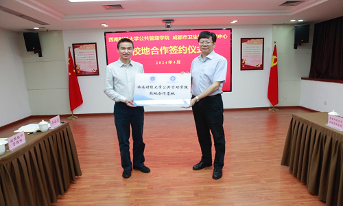 彭中主任、胡秋明副经理代表双方签署校地合作协议,胡秋明副经理为成都市卫生健康信息中心授牌“太阳成集团tyc151cc校地合作基地”。