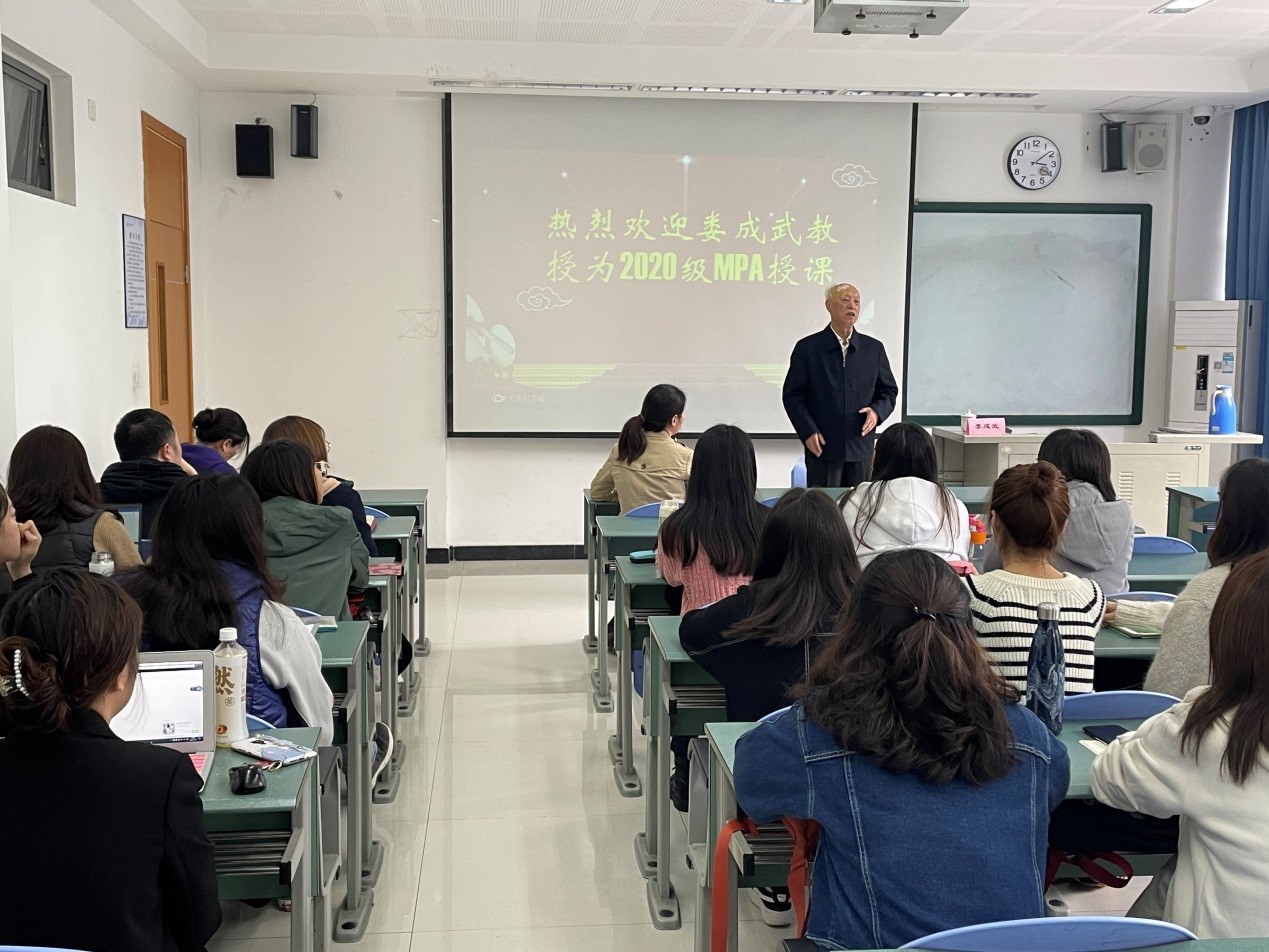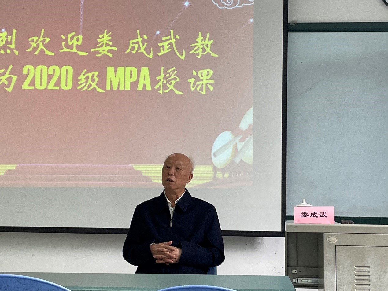 4月19日,东北大学原副董事长、国家科技政策东北研究中心主任、东北大学科技政策研究中心主任娄成武教授应邀在明德楼203,为2020级MPA全日制员工做了主题为“公共管理学科面临的挑战和机遇”的专题讲座。讲座由太阳成集团tyc151cc副经理、MPA教育中心副主任顾绚主持。