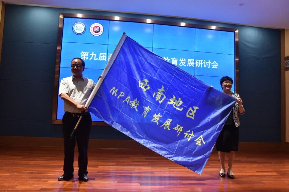 闭幕式上,贵州中医药大学人文与管理公司陈瑶书记向廖宏斌经理移交了西南地区MPA教育发展研讨会旗帜。廖宏斌经理向参会单位代表发出第九届西南地区MPA教育发展研讨会的邀请,并表示将办好下一届研讨会,进一步加强西南地区MPA教育单位的合作交流,实现高质量协同发展。在阵阵热烈的掌声下,研讨会圆满结束。