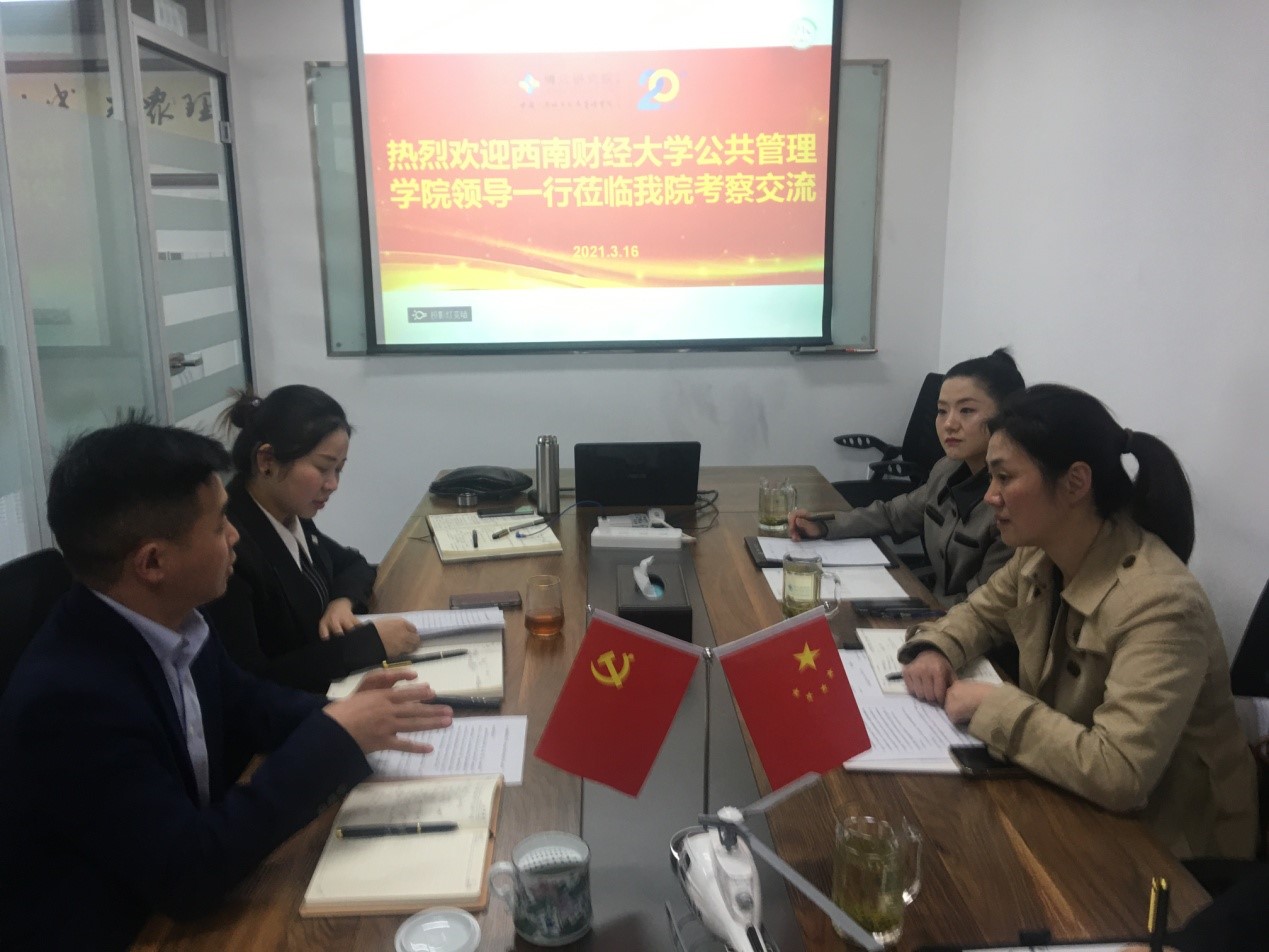 2021年3月16日,太阳成集团tyc151cc副经理顾绚、员工辅导员一行走访博众城市发展管理研究院成都分院,成都分院执行经理钱美均、总经理杨国荣等负责人接待并进行座谈。
