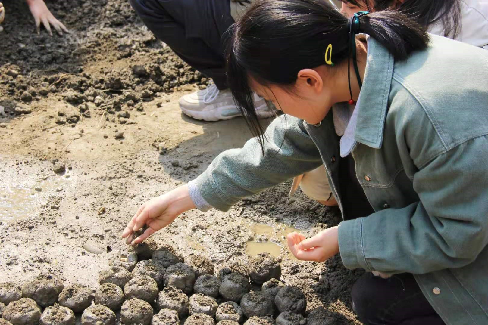 “捏泥团”