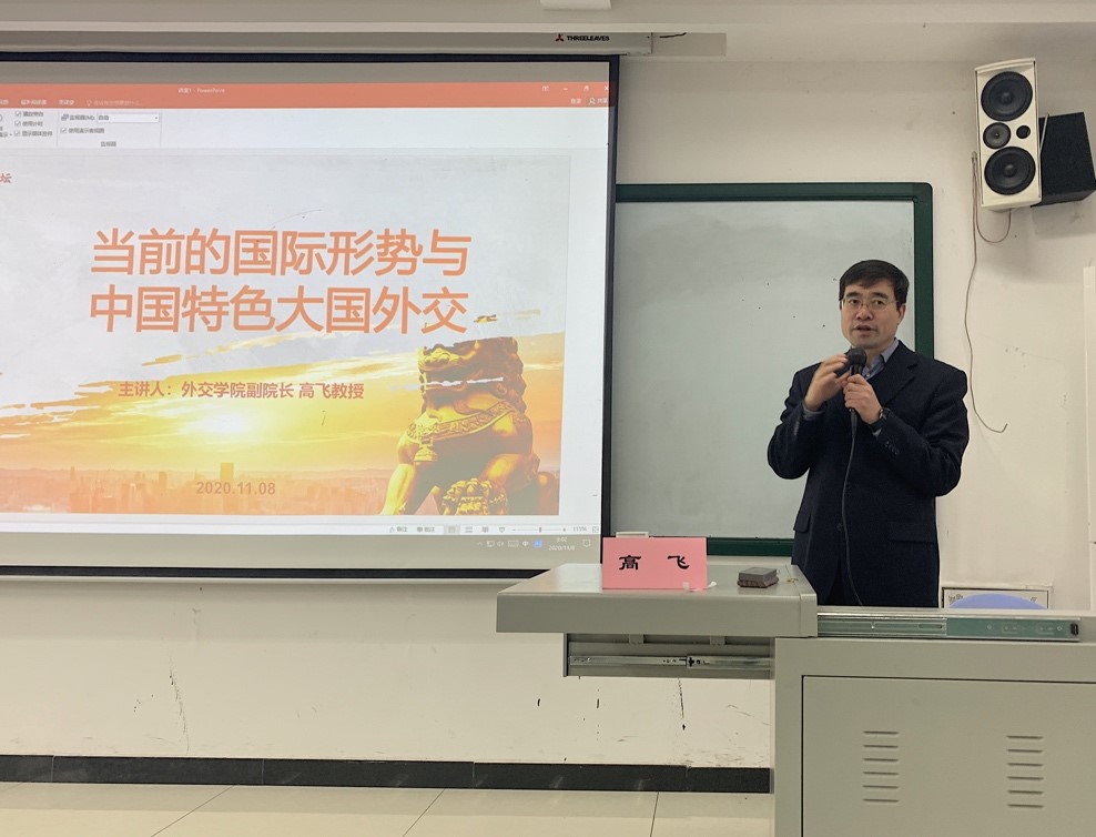 2020年11月8日,“当前国际形势与中国特色大国外交”专题讲座在明德楼211顺利举行,本次讲座邀请到外交公司副经理高飞教授担任主讲,由太阳成集团tyc151cc副经理、MPA教育中心副主任顾绚主持。