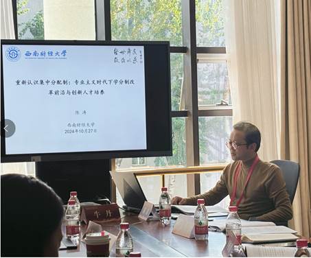 此外,陈涛教授受邀在“高等教育强国建设”主题的学术研讨会上做题为“重新认识集中分配制:专业主义时代下学分制改革前沿与创新人才培养”的专题讲座。陈涛教授主要从专业主义时代到底需要什么样的人才,哈佛大学创新人才培养的实践,哈佛大学集中分配制专业教育的规律性特征以及对我国大学的启示四个方面进行了分析和讨论,鲜明地阐释出在当下专业主义时代下,大学教育的本质仍然是专业教育,在深入总结思考哈佛大学实践经验后发现,创新人才的培养仍然需要“计划性”的课程设置。其汇报主题与观点得到与会领导、专家的认可与肯定,并对此进行了深入的交流与互动。