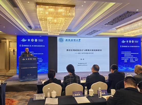 公司教育政策与管理研究所所长陈涛教授应邀出席会议并作主旨报告“教育宏观政策设计与微观决策机制建设”。陈涛教授利用近年来有关四川和成都基础教育田野调查和实证结果,从“为什么要关注教育微观决策研究”“宏观政策与微观决策的关系现状”以及“如何建立一个有效的宏微关系”三个方面展开,具体分析了县域教育中的“遮蔽”现象、教育数字化转型中出现的“反差”现象以及拔尖创新人才早期培养的“错位”现象,通过微观决策研究揭示了宏观教育政策制定、执行和评估中的现实问题,最后从方法论的角度讨论了“宏微结合”的价值特征和实施路径,即建立顶层设计与基层关照的有效互动,其关键在于“办好人民满意的教育”。