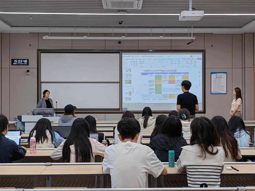 讲座中,蒋小谦研究员围绕全球气候变化的核心议题展开深入讲解。她重点回顾了应对气候变化的历史进程,从《联合国气候变化框架公约》到《巴黎协定》,分析了国际社会在气候治理上的合作与挑战。随后,她结合最新数据,阐述了全球温室气体排放现状,指出尽管部分国家已实现碳达峰,但整体减排力度仍需加强。在谈到主要国家的减排目标时,她对比了中国、美国、欧盟等经济体的碳中和路径,强调各国政策差异对全球温控目标的影响。此外,她还重点探讨了气候适应策略与资金机制,包括发展中国家面临的资金缺口问题及国际气候融资的创新实践。