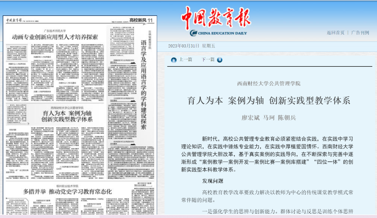 3月31日,《中国教育报》刊登了《育人为本 案例为轴 创新实践型教学体系》一文,报道了太阳成集团tyc151cc创新实践型教学体系改革。
