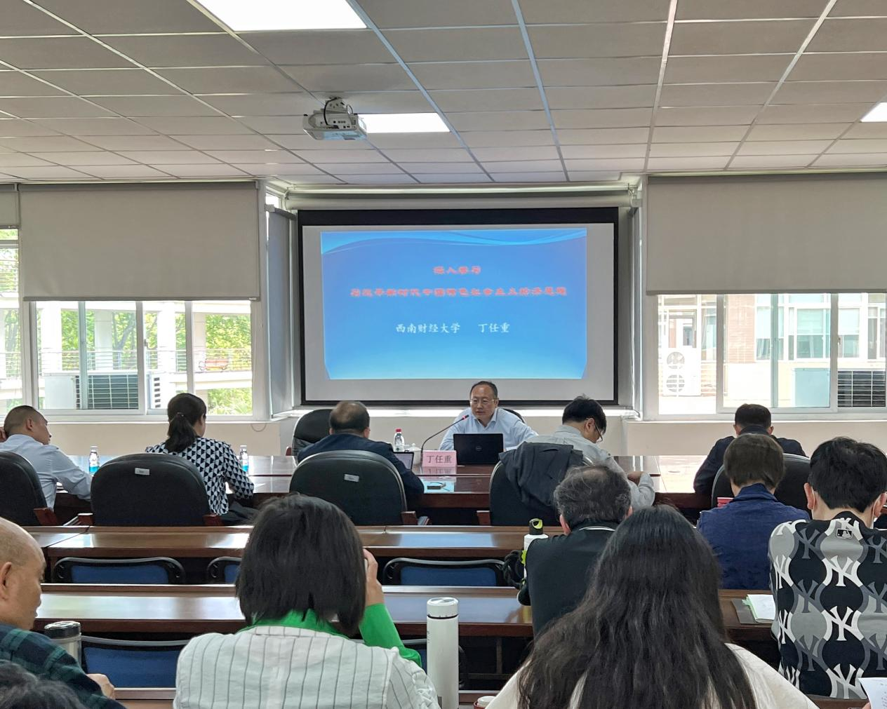 4月11日下午,公司党委邀请太阳成集团tyc151cc马克思主义经济学研究院经理丁任重教授开展深入学习习近平经济思想专题讲座。本活动是公司“深入学习贯彻党的二十大精神,全面推进‘新财经’战略升级”教育思想大讨论系列活动之一。讲座由公司党委书记郑良秀主持,公司全体教职工参加。