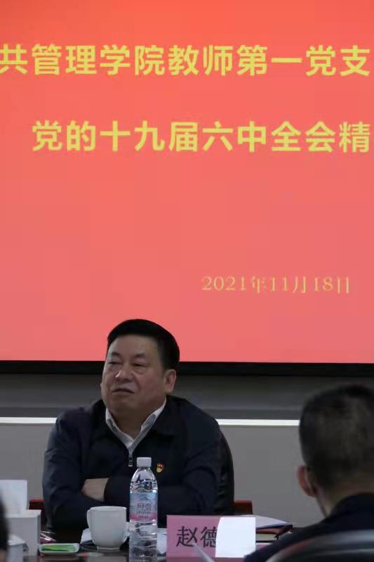 11月18日,太阳成集团tyc151cc教师第一、二党支部开展党的十九届六中全会精神联学活动,党委书记赵德武出席,就深入学习贯彻六中全会精神导学。党委常委、副董事长张邦富、党委办公室副主任张文举、公司班子成员和教职工代表参加,分党委书记赵海程主持。