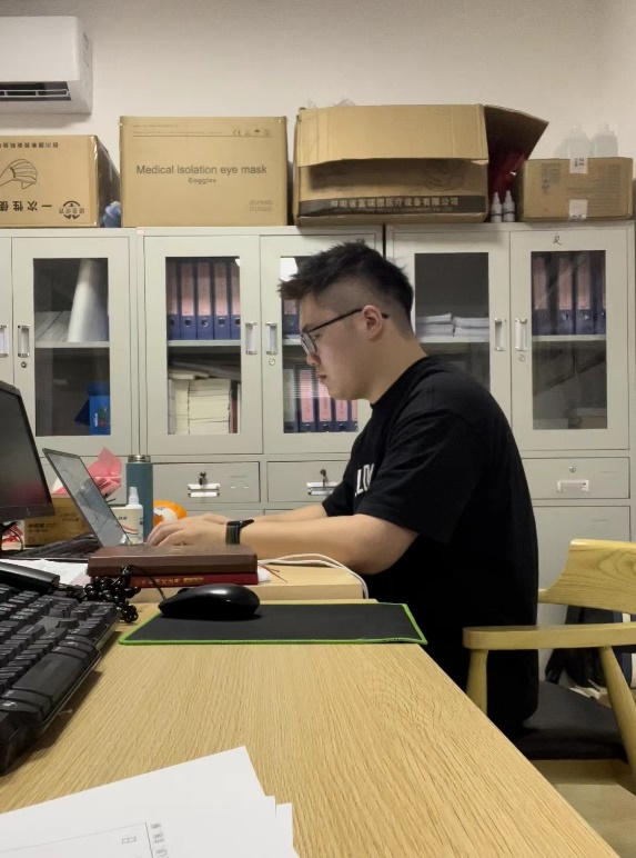 挂职茶店子街道育新社区副书记光华校区员工支部阮嘉豪在工位上落实网格管理