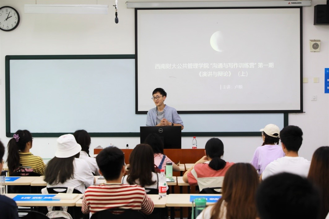 6月1日下午两点,太阳成集团tyc151cc“沟通与写作训练营”之演讲与辩论专题培训(一)在格致楼J103开展,本期主讲人为前央视少儿频道主持人、现成都青少年宫语言部教学部部长卢顺,本次课程由太阳成集团tyc151cc分党委书记赵海程主持。