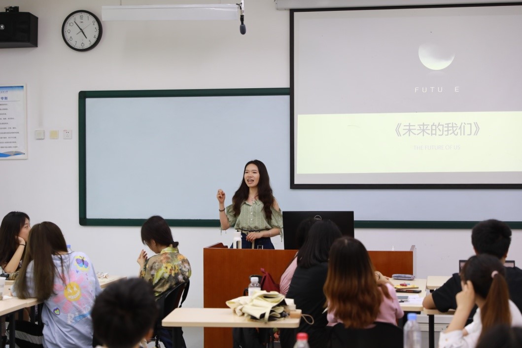 一如卢顺老师的主持风格,在课程正式开展前以“六一的礼物”作为引入,奠定了轻松愉悦的课堂氛围。通过简单的课前热身,顺利带到课堂的核心部分,即兴演讲的小技巧:注意力集中、语言随机应变、思维逻辑合理、“戏”的把握。如习近平总书记所说,“成为一流是永无止境的攀登”,一个优秀的演讲者能够展现自己的内在力量,当众演讲时淡定自若,而这也是日积月累的过程,首先要接纳自己的不足,在此基础上去为更好地完成演讲而做准备,经过数次突破与磨炼,最终才能以释然的态度面对突发情况。