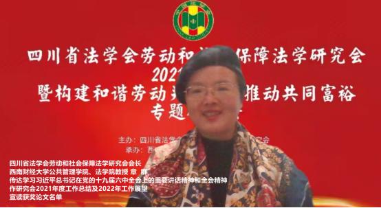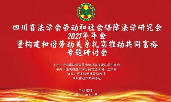 为深入贯彻党的十九届六中全会精神和习近平法治思想、习近平总书记关于扎实推动共同富裕的重要讲话精神,全面落实《法治四川建设规划(2021年-2025年)》,2021年11月21日,四川省法学会劳动和社会保障法学研究会2021年年会暨“构建和谐劳动关系 扎实推动共同富裕”专题研讨会通过线上会议形式圆满举行。