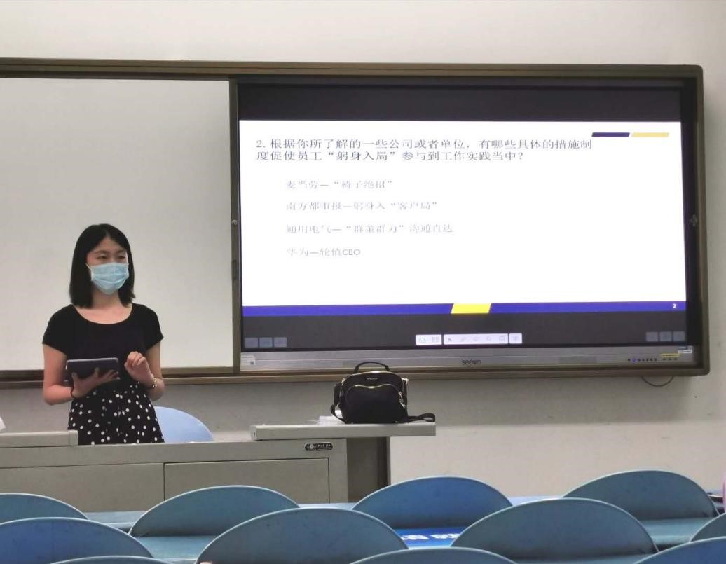 同学们围绕《不躬身入局,别当管理者》主题,进行分组案例研究与讨论,并辅以PPT等多媒体方式予以成果展示。经过认真的准备与激烈的讨论,各小组代表从不同视角展示了其对“躬身入局”的理解与看法。
