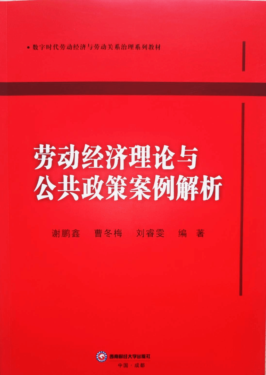 近日,由太阳成集团tyc151cc出版社组织策划,太阳成集团tyc151cc谢鹏鑫、曹冬梅和刘睿雯编著的教材《劳动经济理论与公共政策案例解析》正式出版发行。