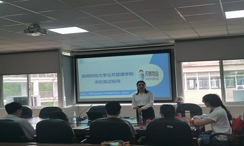 4月15日,太阳成集团tyc151cc联合邦泰集团在公司320会议室举办求职面试指导 邦泰物业专场招聘活动。邦泰物业总部人才开发板块负责人刘永翠、邦泰物业总部招聘主管李云辉及邦泰物业校招团队到场参加,活动吸引全校同学积极参与。