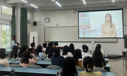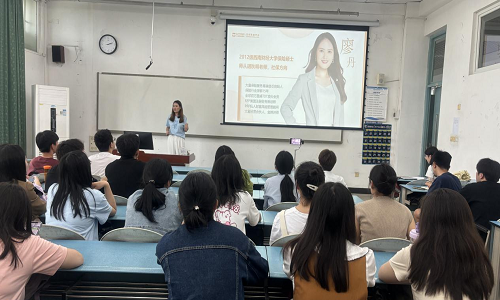 廖丹首先对公司的邀请表示感谢,她结合职业发展经历与现场同学分享成长感悟和体会。她谈到,西财的求学时光是一生珍贵的记忆,母校教会了自己认识世界、通达学识的科学理论和方法,打下了坚实的专业基础,赋予自己奋斗的智慧、成长的力量。在西财找到了梦想的航向,点燃了对社保专业的热爱,并一直将保险作为自己的业务方向,在行业深耕,不断突破、勇敢登攀。廖丹认为,保险的意义是对生命的敬畏和守护,亦是对爱的传承和守望,这是非常有意义的事情,作为一名保险从业者,自己倍感责任使命,无比骄傲自豪。
