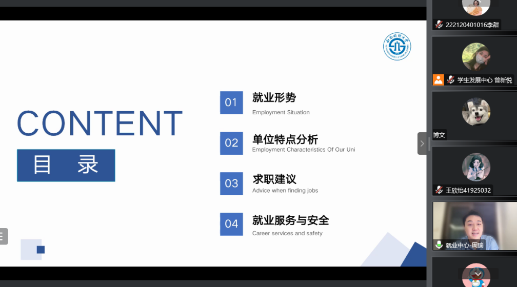 本次活动邀请到员工职业规划与就业指导中心周瑞、李艳两位老师,通过腾讯会议面向全院2023届毕业生做分享交流。