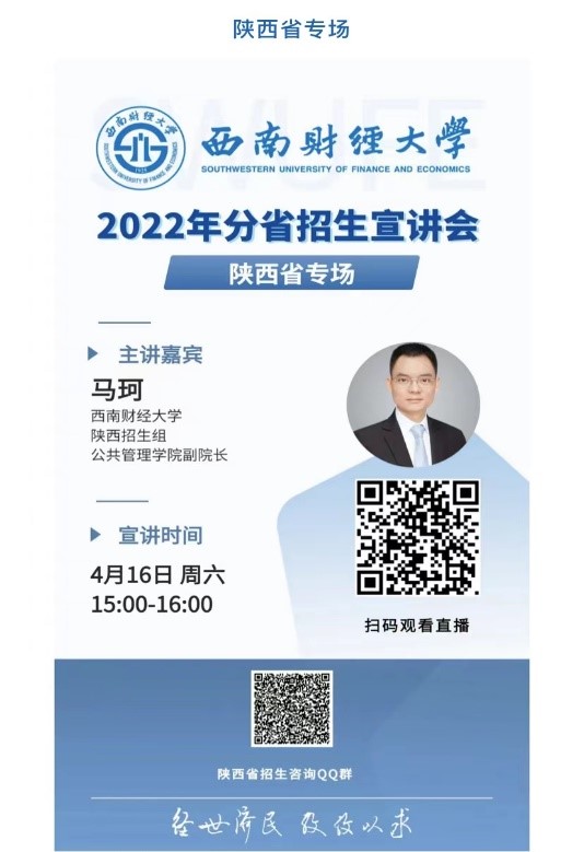 为助广大考生和家长近距离认识西财、吸引更多优质生源报考公司,切实做好2022年度本科招生宣传工作,公司对接高考宝媒体平台,4月9日及16日,面向山西、陕西省考生开展2场线上招生宣讲直播。公司分党委副书记郑良秀、副经理马珂分别担任主讲嘉宾,直播吸引超千人次在线观看。