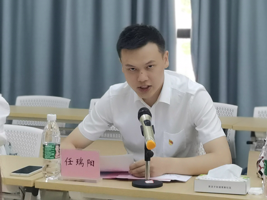 随后,公司研二员工任瑞阳代表此次公司挂职实习的5位同学发言,他谈到:自己一直致力于基层党建引领治理创新,如今能深入基层、扎根社区,希望能将自己在公司里学习到的基层治理知识融入到实践中去。