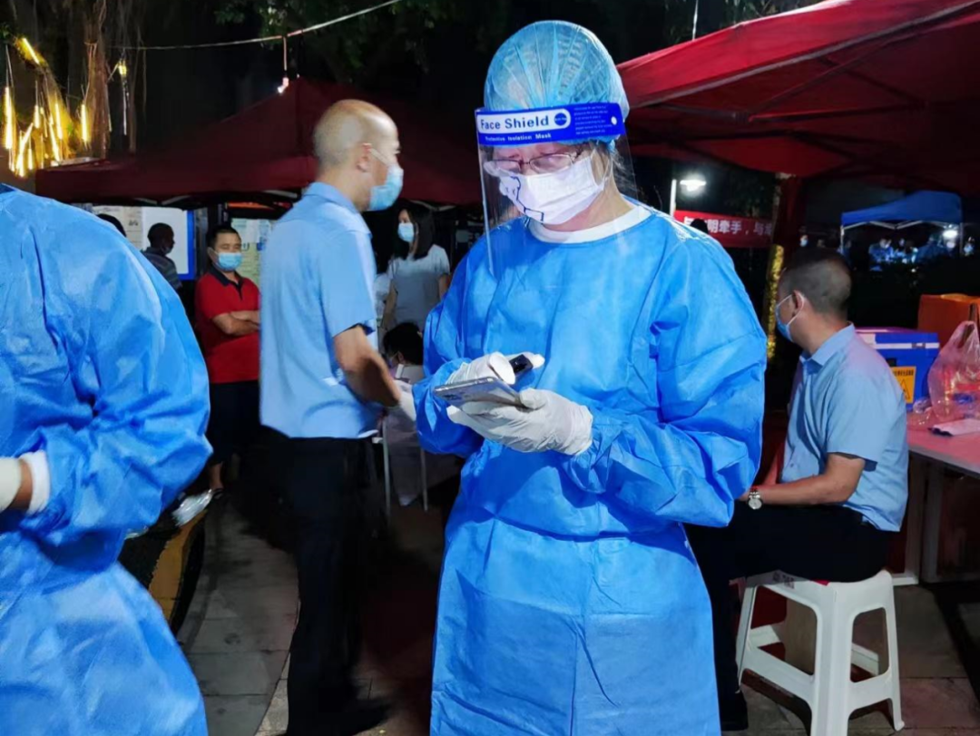教师第一支部书记冯华老师主动参与社区疫情防控工作,在学府尚郡社区协助工作人员做好核酸检测工作,每天和其他志愿者共同负责1800位居民的核酸信息录入工作。