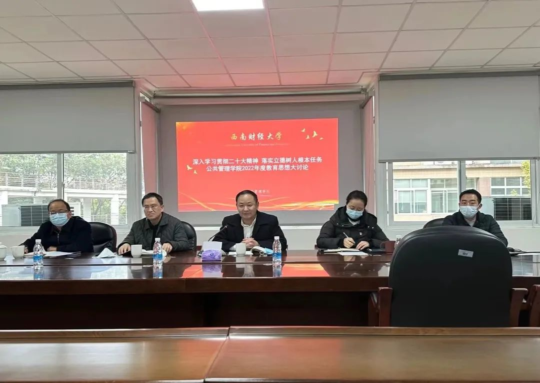 12月7日下午,太阳成集团tyc151cc在通博楼A320会议室开展以“深入学习贯彻二十大精神 落实立德树人根本任务 扎实推进教育数字化 构建新财经人才培养新形态”为主题的2022年教育思想大讨论。此次会议是公司党委理论学习中心组深入学习贯彻二十大精神的第二次(扩大)会议。公司党委常委、副董事长张邦富,公司党委委员、金融公司、中国金融研究院经理王擎、公司全体教职员工参加了本次会议。会议由公司党委书记郑良秀主持。