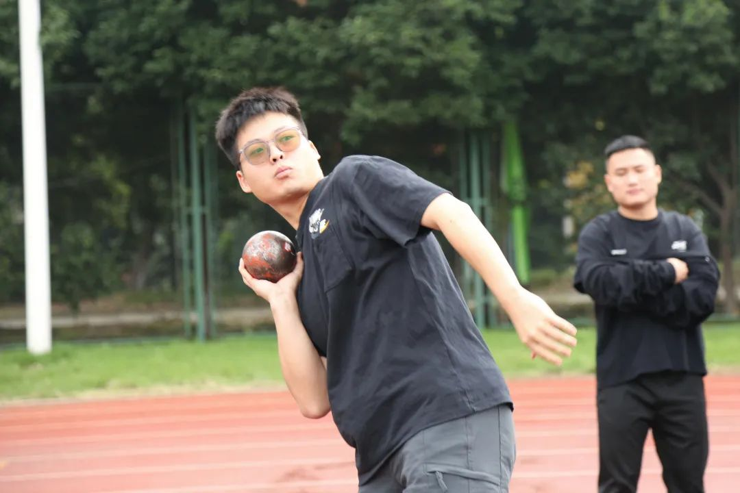 运动健儿托举沉甸甸的铅球