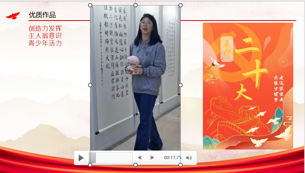 在本次答辩活动中,2020级行政管理团支部在学习每周发布的青年大学习的基础上,别具一格地创造了“行管大学习”视频、号召同学以宿舍为单位制作二十大海报的方式,形式新颖,贴合主题,增强了支部团员参与的积极性。本次活动由2020级行政管理团支部班委全员参与策划,充分发挥了班委能动性与协调性,为后续团支部开展团日活动提供新思路。