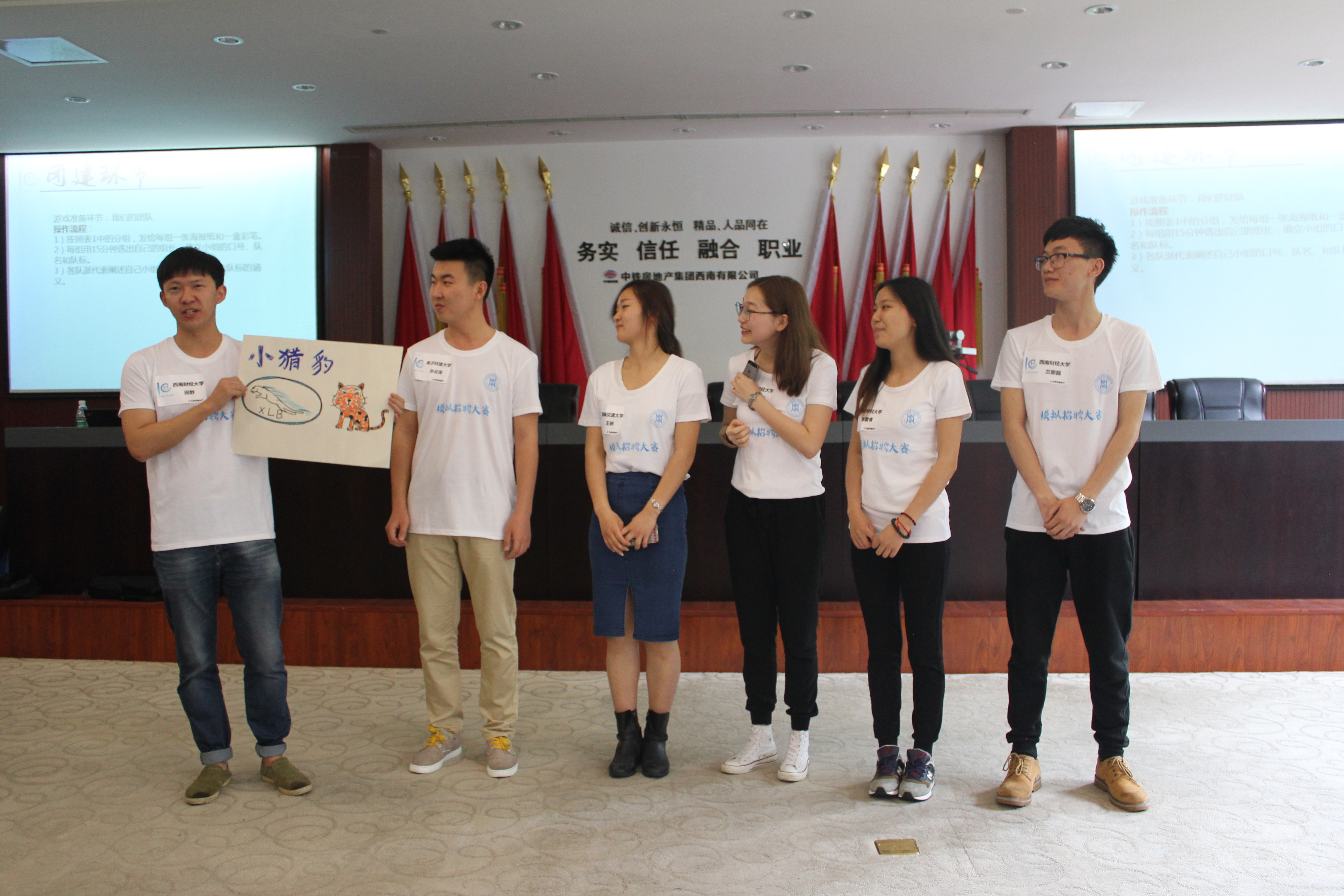 上午10点,丰富有趣的素质拓展活动在中国铁建地产集团西南区域公司会议室进行。首先,选手分为四个组进行十五分钟的团队建设,在激烈的讨论中各组确定队名,设计队标,并给大家展示了各自的独特风采。接着,在方阵排雷、你画我猜接龙、搭纸桥、默契投球的游戏环节中,各组同学团结协作,创意层出,充分发挥集体的智慧,展现了团队的凝聚力和默契配合。素拓结束之后,大家聚在一起进行沟通交流,完成了素质拓展的团队总结。这次素质拓展不仅增进了对彼此的认识,也为接下来的职场实战选择队友做好准备。