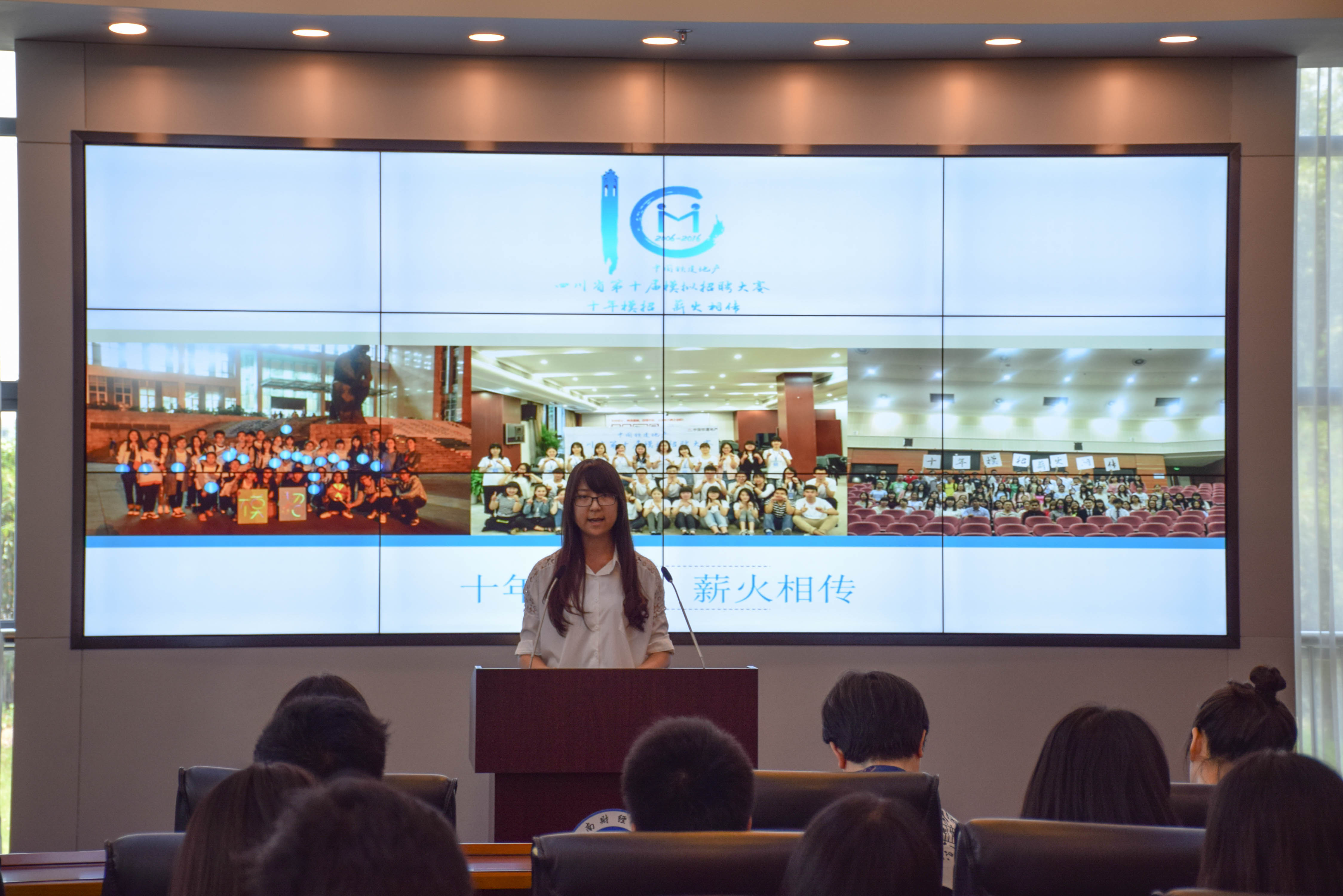 章书记致辞后,第十届模招组委会代表陈丹瑰同学发言。她图文并茂地展示了此次四川省模拟招聘大赛的全部历程及取得成果,并细数赛事进行中工作人员们所做的各项工作,并向所有为模招辛勤付出的人表达了感谢。